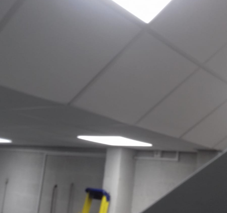 Our fitters installed the cost effective Vinyl faced tiles and white grid throughout the whole area as well as our energy saving LED light panels.