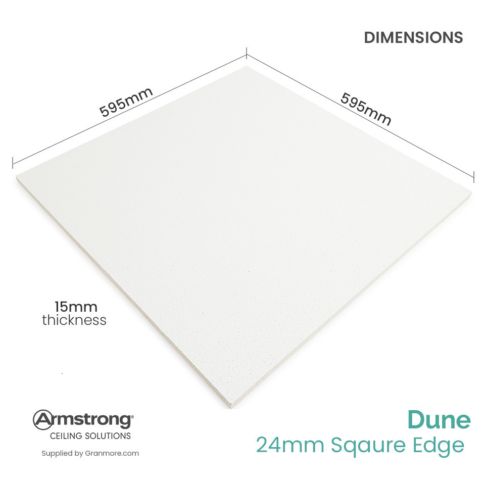 Size: 595mm x 595mm (technically the tiles are 595mm x 595mm to fit a 600mm x 600mm ceiling grid)